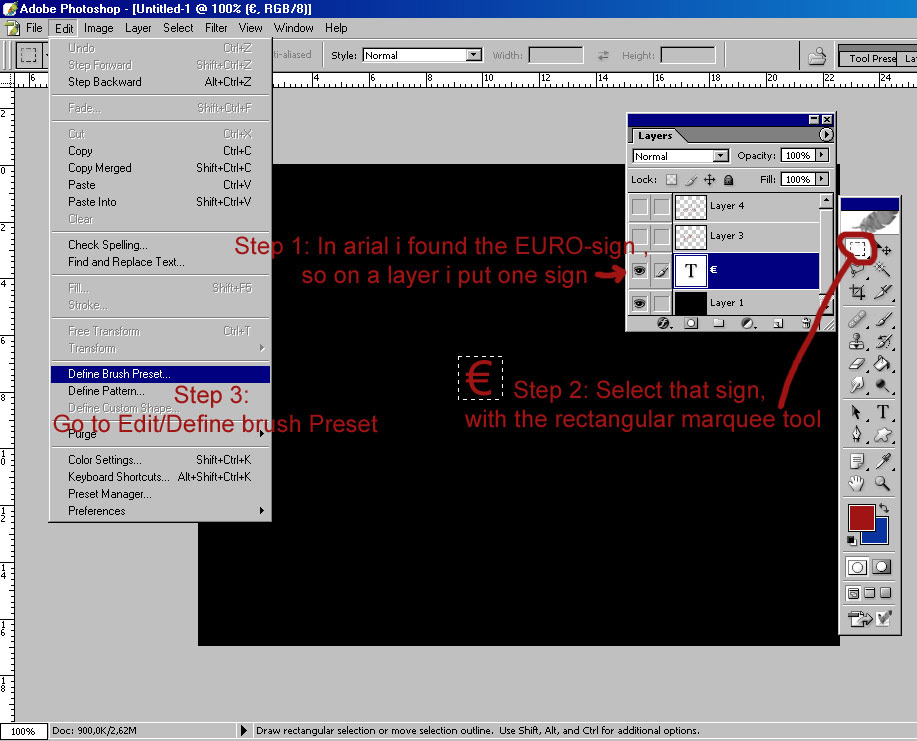 The money signs like €, $ and £ can be found in the Arial font, so no need to search for them as they are right there on your keyboard. For the others, I think you can find them in Microsoft Word or a similar program (by using symbols) and then just copy and paste them. On to the tutorial: