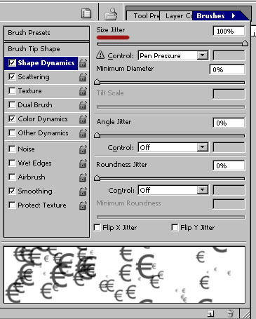 Step 4. The first part of the settings, shape dynamics will vary with the size of your brush.