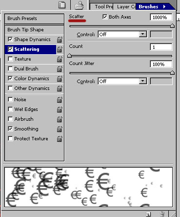 Step 5: Scattering will put the signs randomly over your layer. It disperses the signs when you brush.